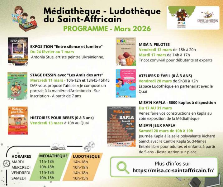 Mercredi 11 mars de 10h à 12h et de 13h45 à 15h45